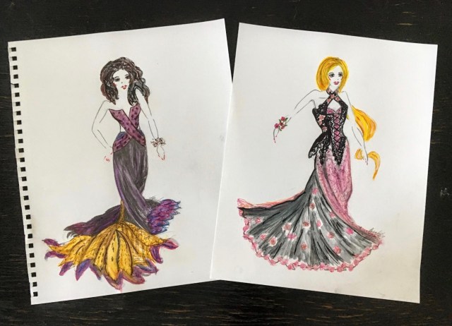 I love your gown drawings and your gowns. Another wonderful one eyed sketch. I think you need to get Holly in the Wild Rose gown and have her recite “Wild Rose”.