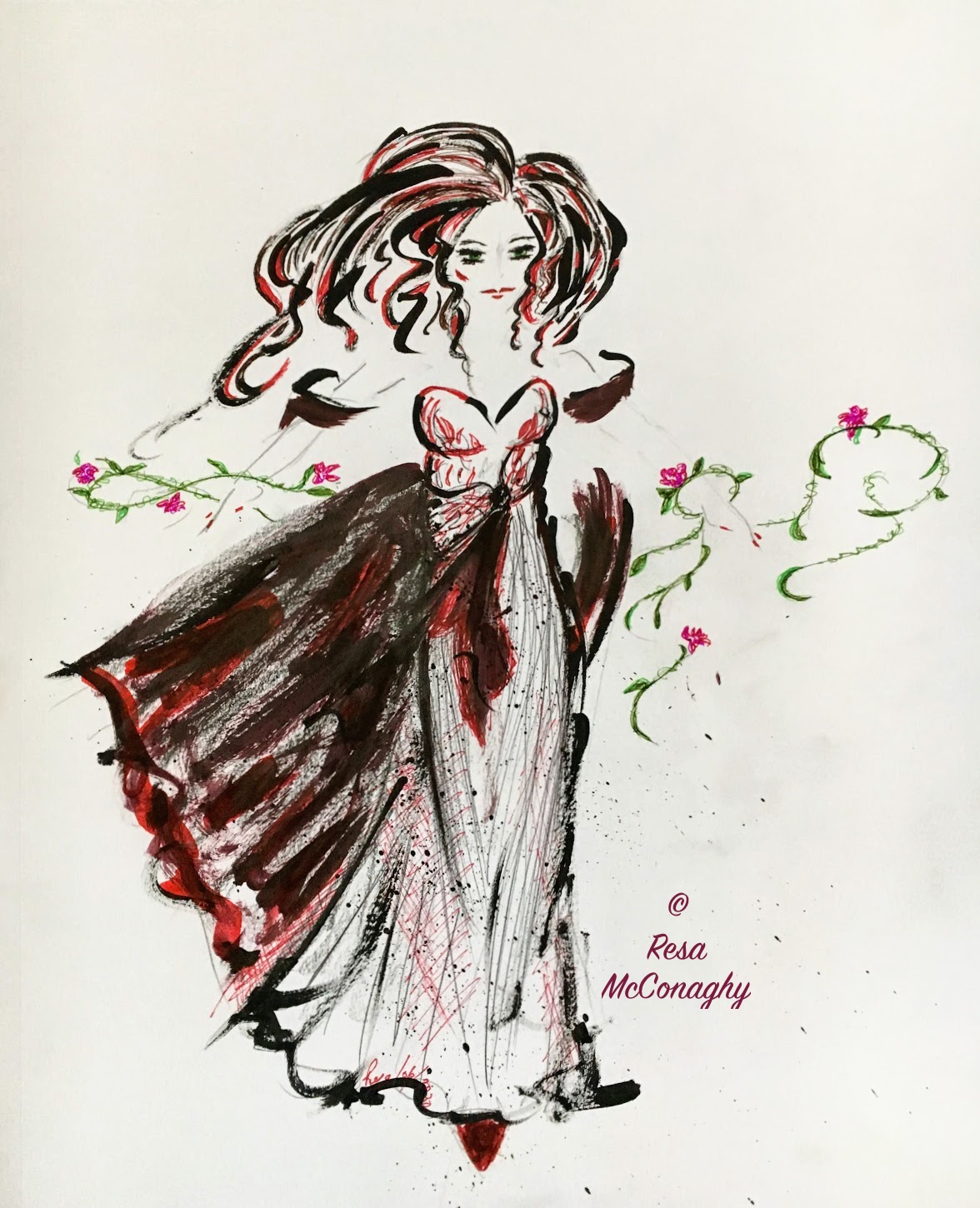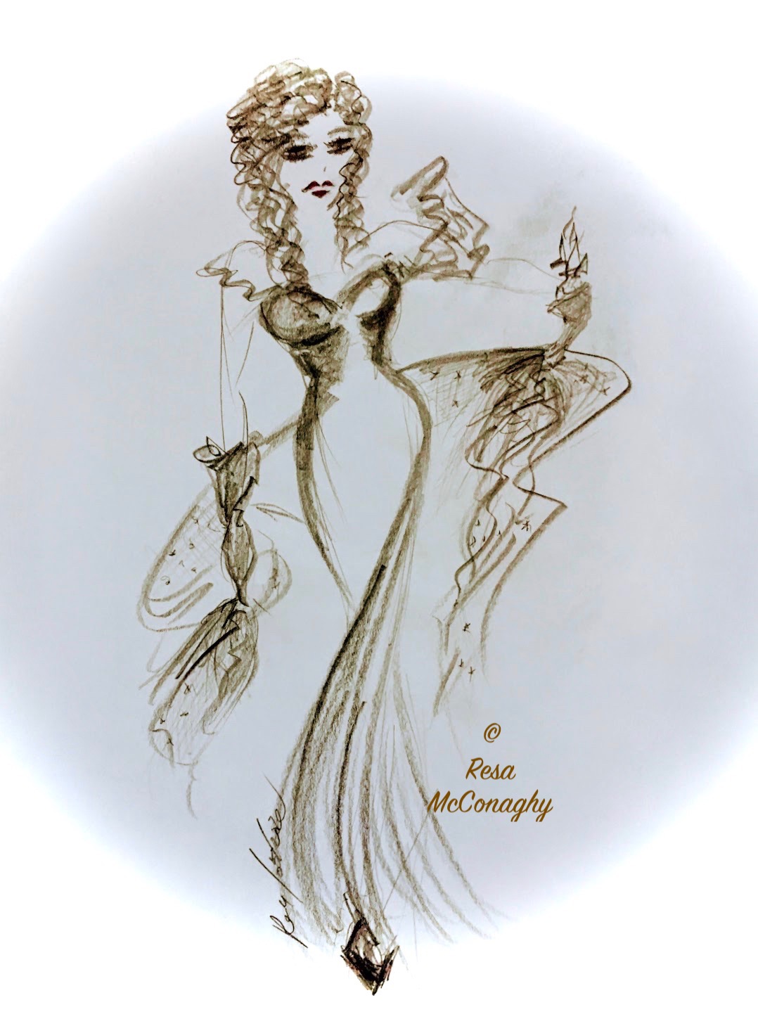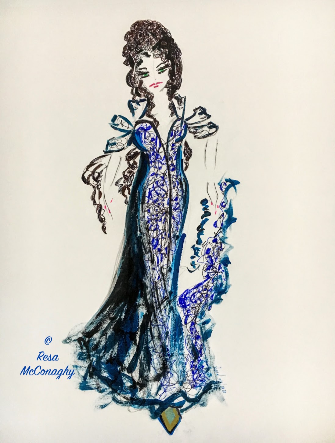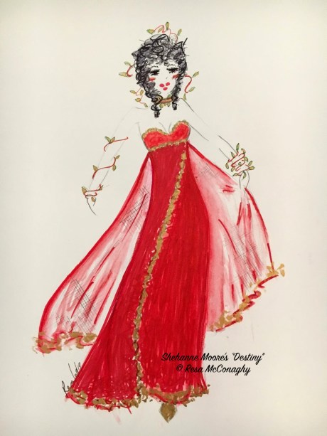 You can read my review, some Q&A with Shehanne and see the gown drawings by clicking on my above rendition of Destiny.