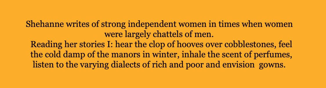 3. Oh Resa… What a beautiful interview, and such interesting books…. So loved this and those beautiful gowns… I do enjoy historic romance and will be looking deeper into these titles 🙂 And loved how Shehanne describes how the idea was whispered in her ear as it popped into her head as she typed… And agree with her… Still the divide of Rich and Poor….