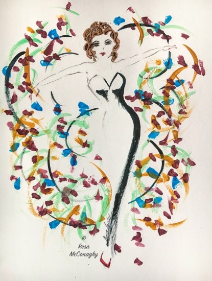RR & I are thinking of doing more “Tangle” posts. The future will tell. In the meantime, I’ve done 1 drawing for the finale of the Chicago Adventure! I can hardly wait for you all to see your Picasso inspired Art Gowns!