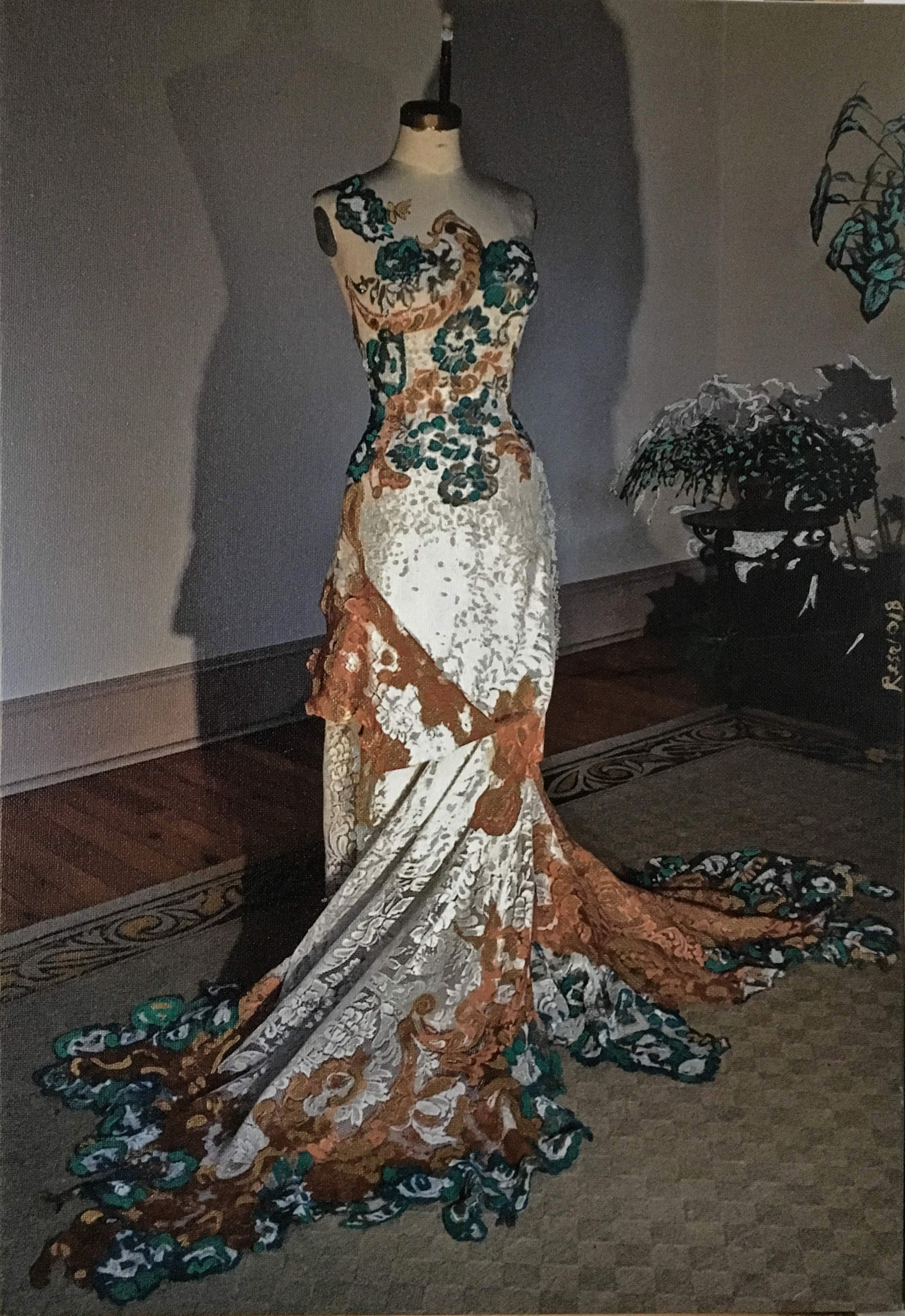 At my mirror I braid silver thread through my hair. Should the Frenchman return I am wearing the dress he likes. Last night he signaled with a stone at my window .