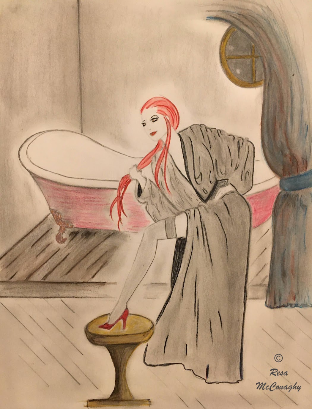 The walls are thin and the wood floor is bare. Music drifts upward, slips under my door, “La Vie En Rose”, the sighs of desperate lovers , their bodies pressed against one another.