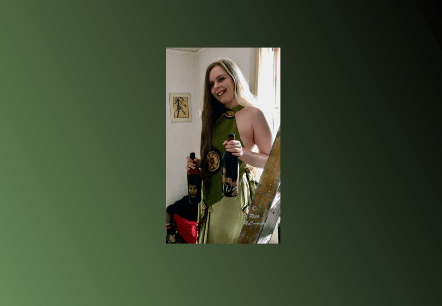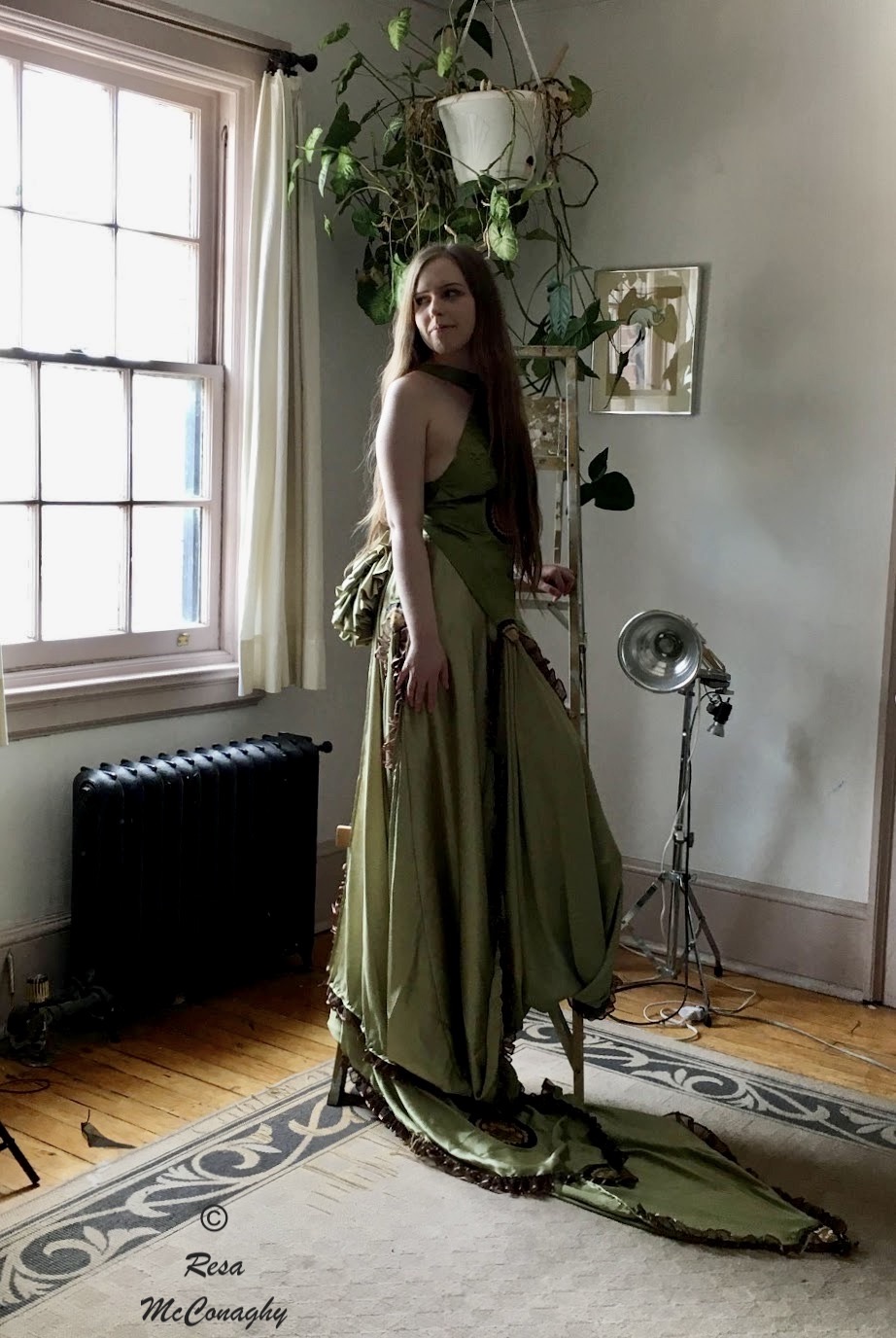 Answer: Throw an Art Gown on her and start shooting! No time for cleaning up, setting a stage, ironing, lighting or thinking in general!