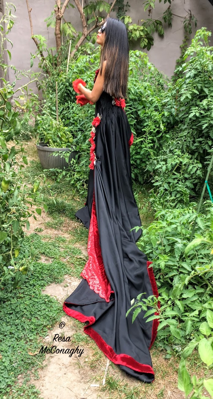 Wow, seems Shey’s tree sent her to Miami with some enchanted roses. As the roses change colour, so do the roses on her boho, sheer voile angel gown. This is Flower Power at its finest!