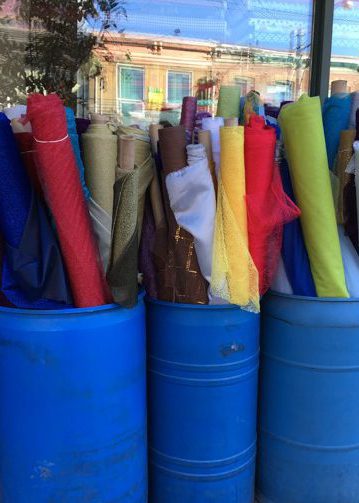 It’s up-cycled leather, from Resa’s boyfriend’s old leather coat and pants.