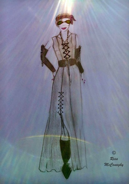She embraces the concept that Art Gowns are hand sewn from off cuts, repurposed clothes, curtains, table cloths, etc. and NOS (new old stock).