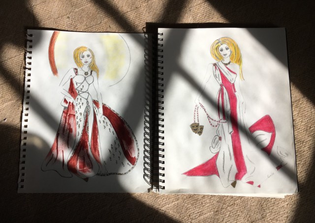 Resa had sent leftover Art Gowns fabrics to The Coop. So Iris began using Resa’s fabric’s for the upcoming Hallow’een celebrations