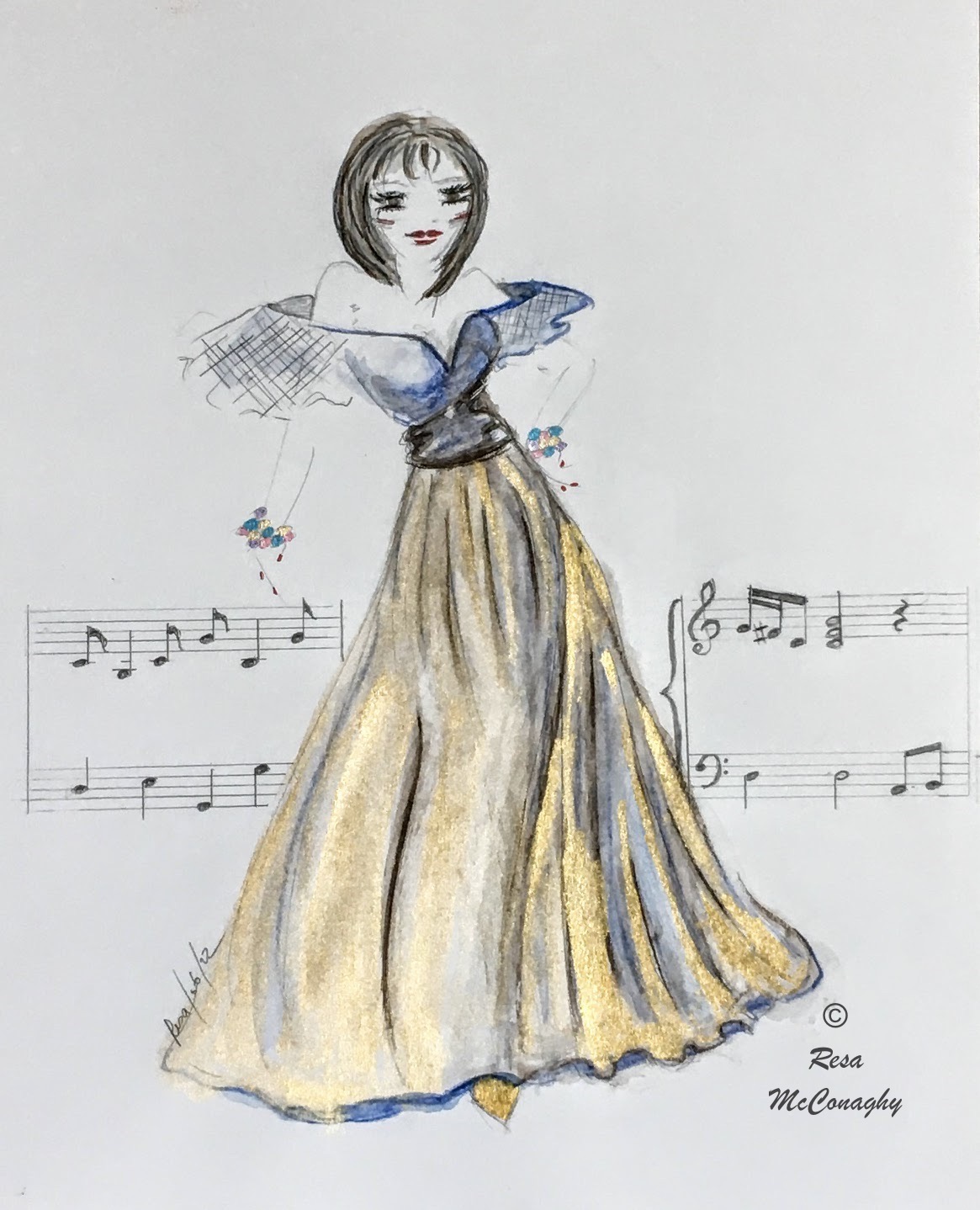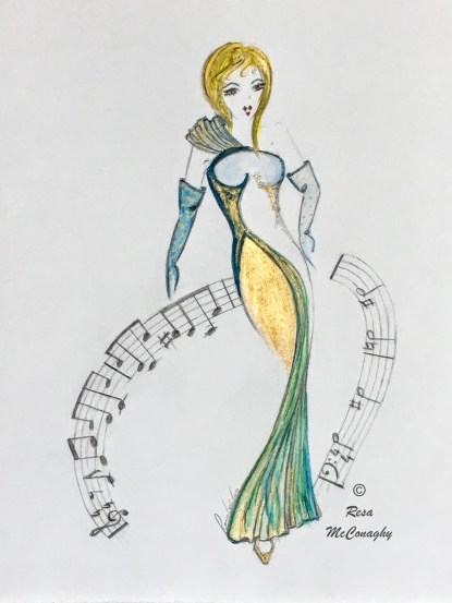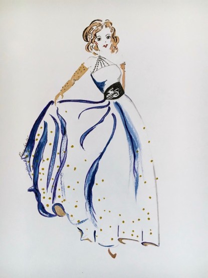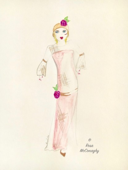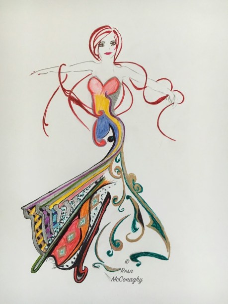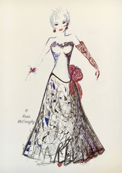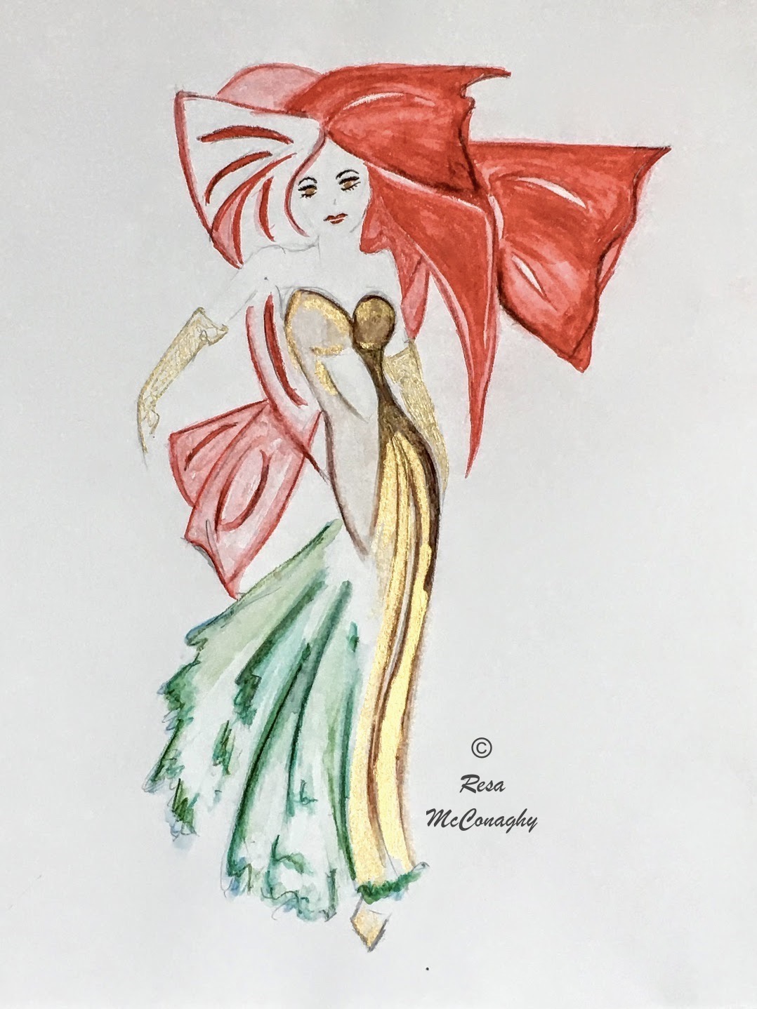 Resa – John, I’d like to post this on “Art Gowns”, but need as many gowns as possible. As you can see I have drawn Sam in: an Angel gown, a Las Vegas gown, A Roman Colosseum Gladiatorette gown, a Tea Time on the Titanic gown and a 1912 Ball gown.