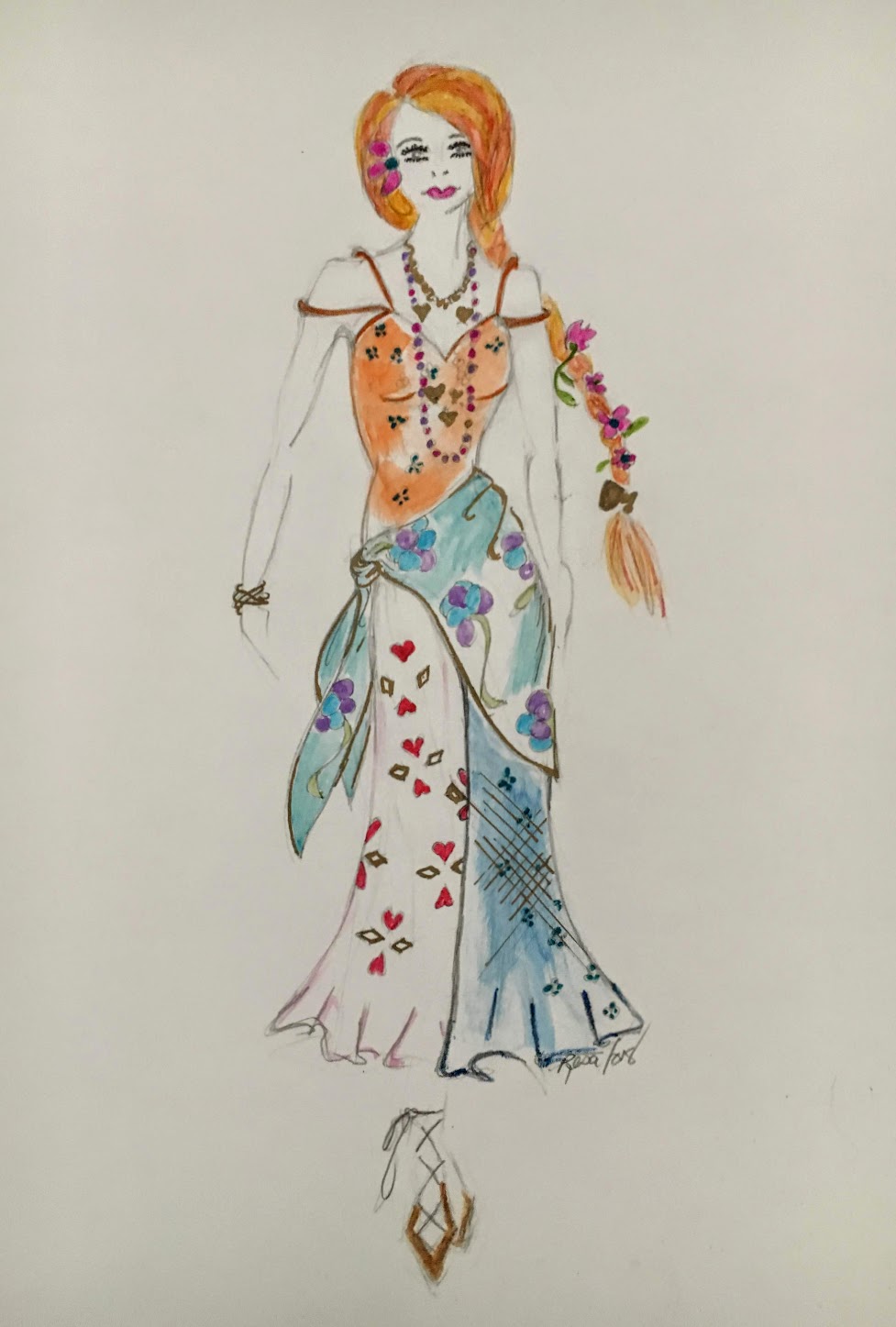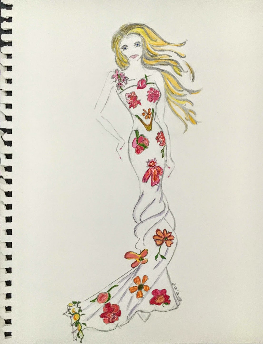 In this regard, she speaks much of the beauty of life. To depict that, I have drawn a beautiful woman, in an earthy gown. The gown turns into an upside down tree. Its branches depict the changing seasons, time.