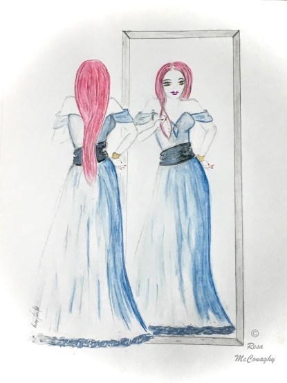 Back on Earth PBH morphed back into her alter ego. Ms. Rosso threw on a simple house gown. She proceeded to the Art Gowns room, for her fitting.